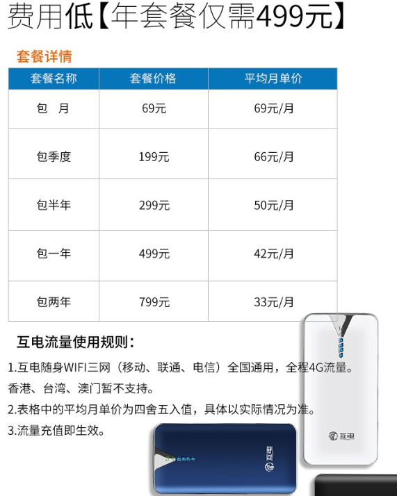 互电随身WiFi年费为499元,与宽带相比,互电费更便宜。尽管“两会”期间对三大运营商提出了降费提速的要求,但很明显,短期内不会有太大变化。