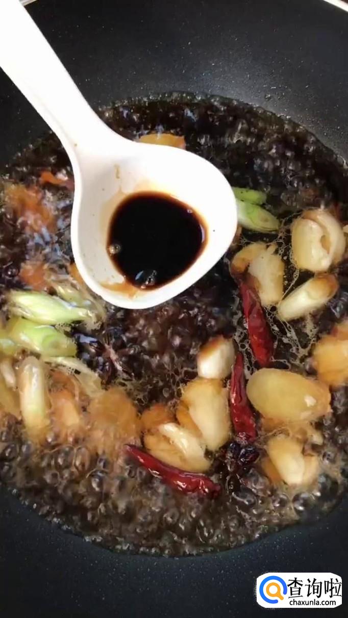 然后往锅中加入适量的酱油和盐巴,如下图所示。如果你的口味重一点,可以多放一点酱油和盐巴;如果你的口味偏淡,可以少放一点。