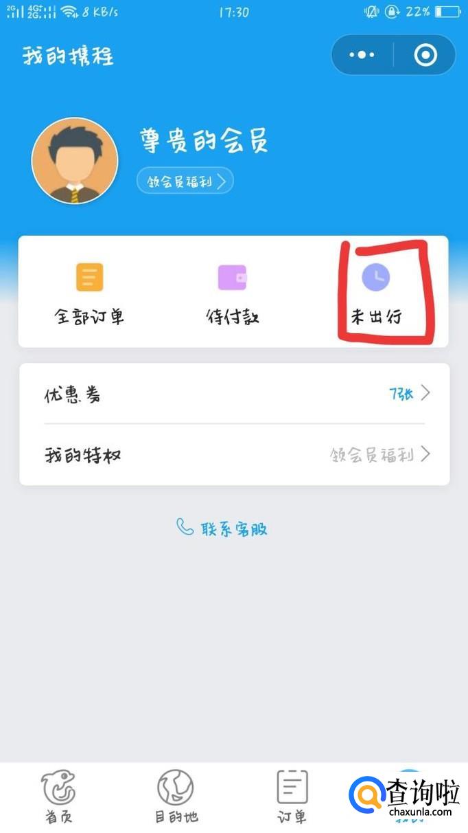 首先进入自己购票的平台,在此我们以携程为例。在个人中心里,找到未出行选项,点击打开。