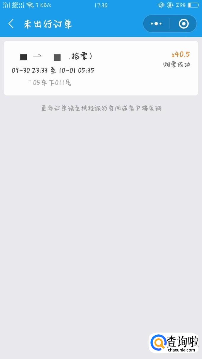 找到自己先要退掉的票,点击该票,显示具体信息。