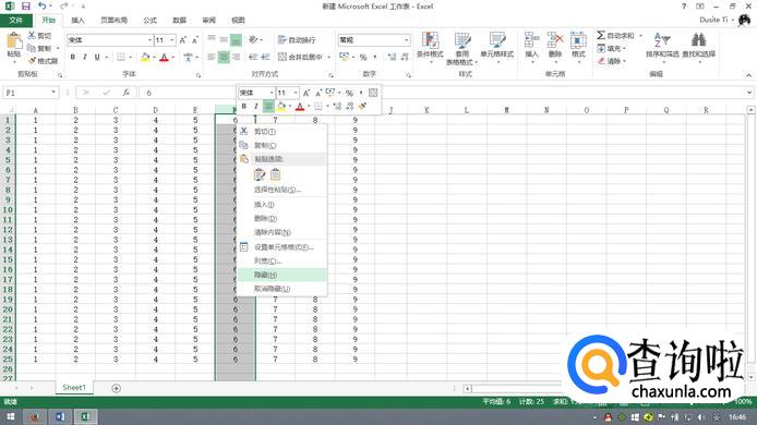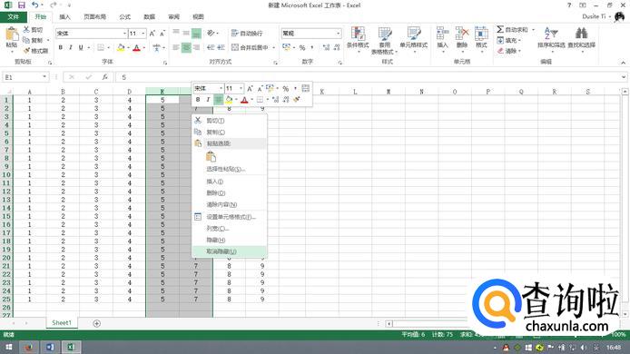 现在我们想要取消隐藏的F列就选中F列相邻的两列,然后右击点击取消隐藏就可以了。