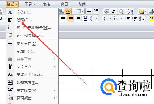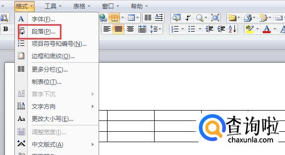 有时候根据需要,表格内文字的行距和其它文字的行距不同,那么现在就在表格后面插入一个回车键,然后选中表格和回车符,选择“格式”里面的“段落”,如下图所示。