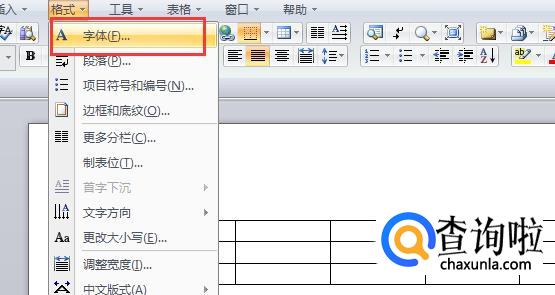 如果想要调整字间距选择的话,那么点击“格式”下面的“字体”,如下图所示。