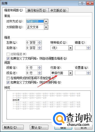 在弹出的界面里面找到“行间距”进行设置,拉下行距下面的小三角就可以选择了,我们选择和表格外文字一样的行距就可以了,如下图所示。
