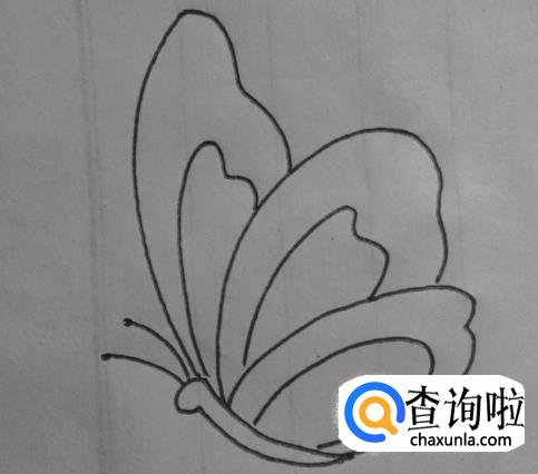 先在画纸上画出蝴蝶的头和身体,如下图所示。