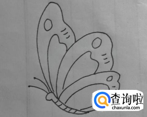 再在翅膀上画一些小装饰,在身体上画上横线,这样一个简单蝴蝶就完成了哦!