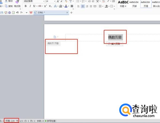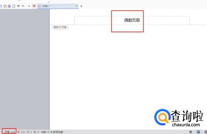 接着往下看第三个显示的是奇数页页眉,第四页显示的是偶数页页眉,这样就设置成功了!