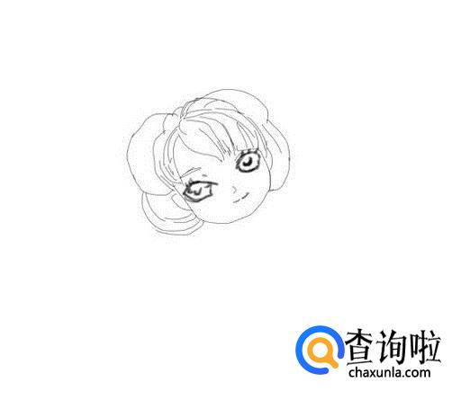再在面部上画出女孩的眼睛及眼睫毛,然后再画出女孩的鼻子和嘴巴,如图所示: