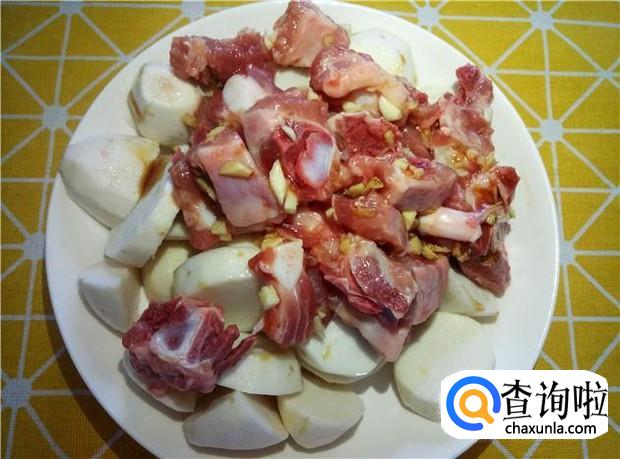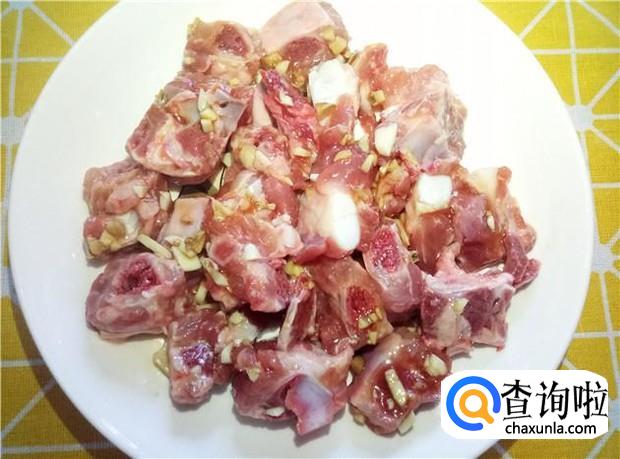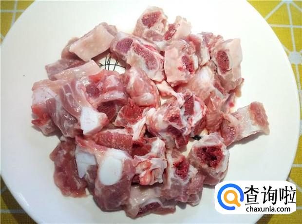 排骨清洗干净,切成小块,沥干水分,备用。