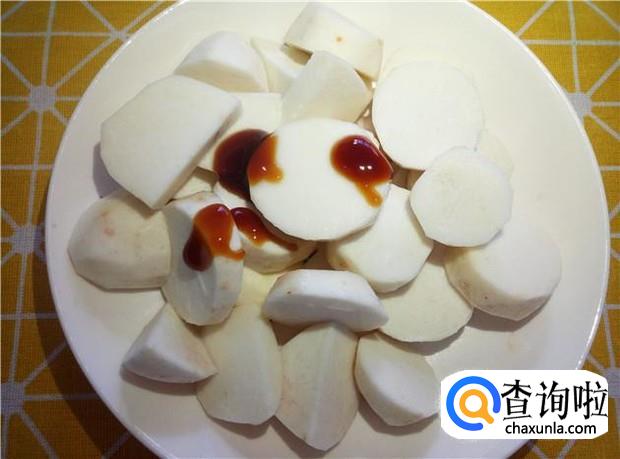 毛芋头加入适量的蚝油,搅拌均匀,这样蒸熟的芋头就比较入味了。