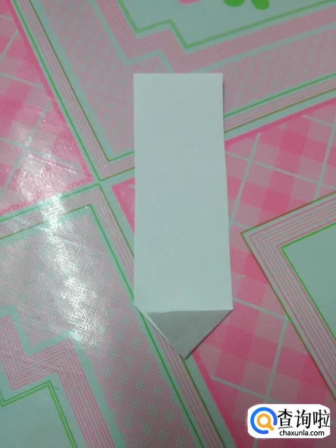 把长方形纸的左下角往右上方折。