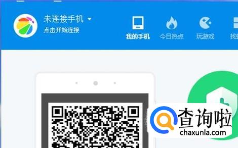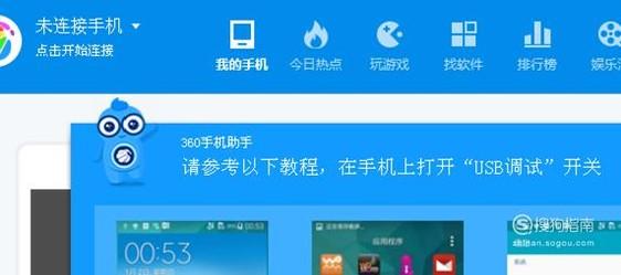 我们可以借助360手机助手来连接试试,点击左上角的“点击开始连接”,正常的话很快就会连接上。如果连接不上,会告诉你原因,多数是像图中所说“USB调试”没有打开。