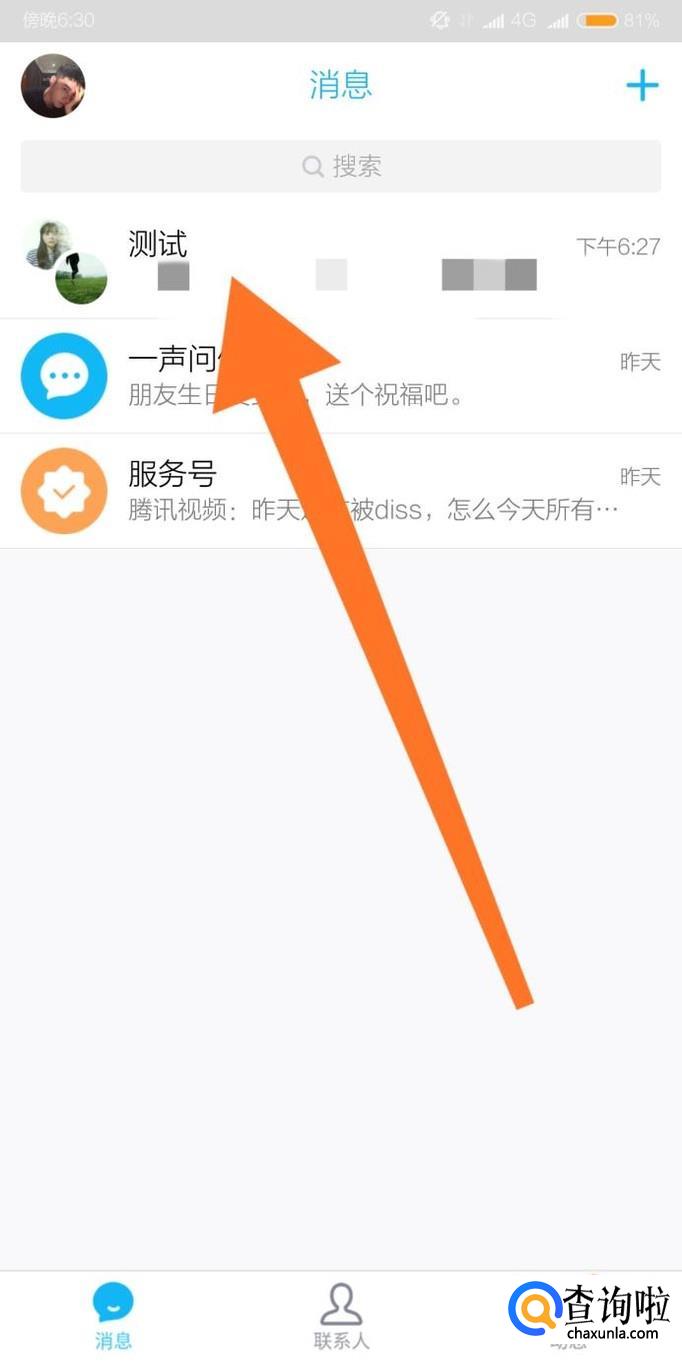首先进入手机QQ消息页面,点击进入需要退出的QQ讨论组。