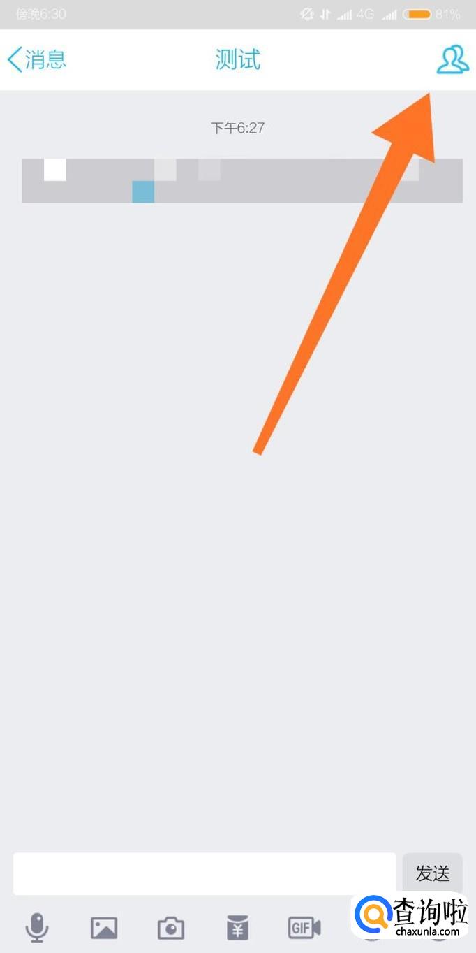 进入群聊天界面后,点击右上角的头像图标。