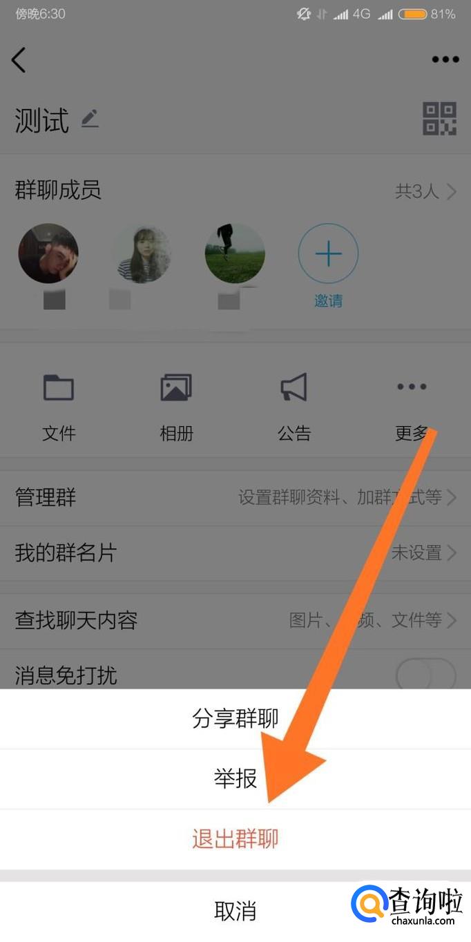 最后点击“退出群聊”即可退出讨论组。