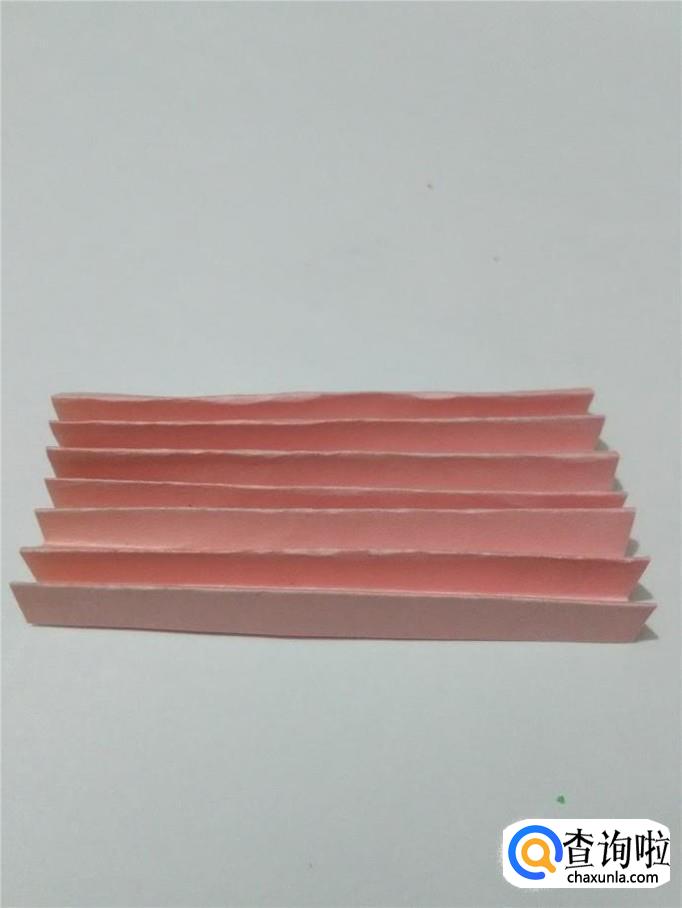 再反过来,往上折一段,就这样,一直把纸全部折完,形成下图的样子。