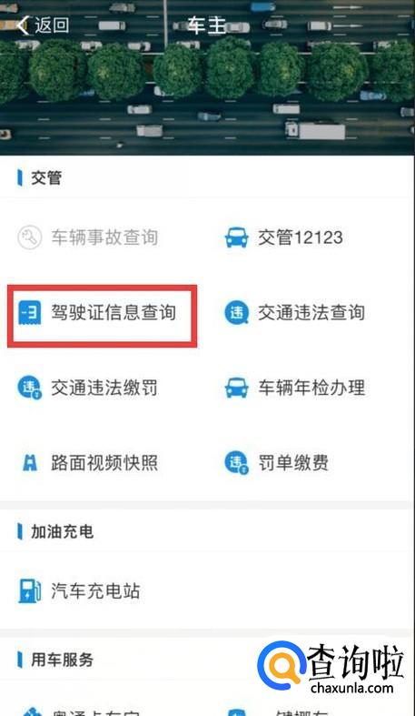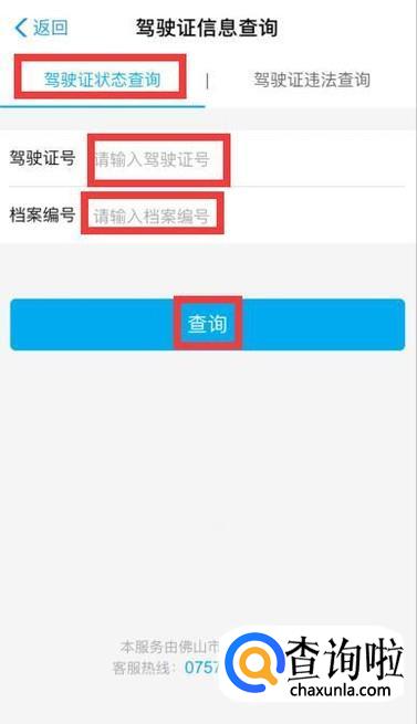 接着点击驾驶证状态查询,输入驾驶证号和档案编号,再点击查询。驾驶证号就是身份证号。