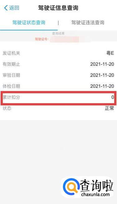 查询后就可以看到累计扣分为0,那就是还有12分。