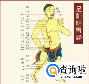 第三张图是【足阳明胃经图】。口诀为:四十五穴足阳明,承泣四白巨髎经,地仓大迎下颊车,下关头维对人迎,水突气舍连缺盆,气户库房屋翳寻,膺窗乳中下乳根,不容承满出梁门,关门太乙滑肉起,天枢外陵大巨里,水道归来达气冲,髀关伏兔走阴市,梁丘犊鼻足三里,上巨虚连条口底,下巨虚下有丰隆,解溪冲阳陷谷同,内庭厉兑阳明穴,大趾次趾之端终。