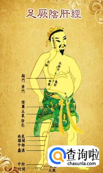 最后一张图,也就是第十二张图为【足阙阴肝经图】其口诀为:一十四穴足厥阴,大敦行间太冲侵,中封蠡沟中都近,膝关曲泉阴包临,五里阴廉急脉穴,章门常对期门深。