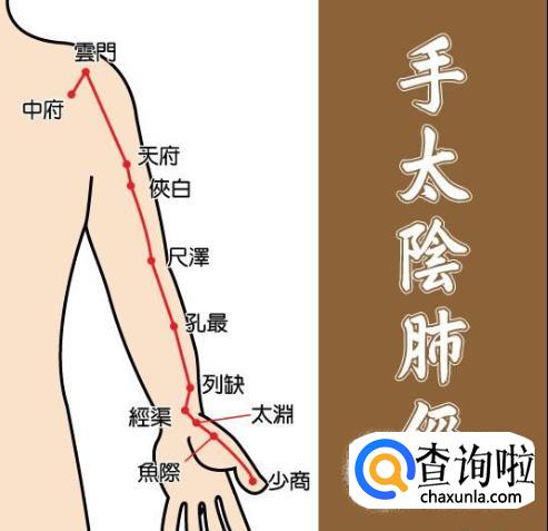 第一张图是【手太阴肺经图】。它的口诀:手太阴肺十一穴,中府云门天府列,次则侠白下尺泽,又次孔最与列缺,经渠太渊下鱼际,抵指少商如韭叶.