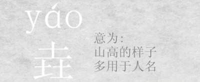 垚(yáo),古代同“尧”。意为山高的样子。这个字不常见,多用于人名。