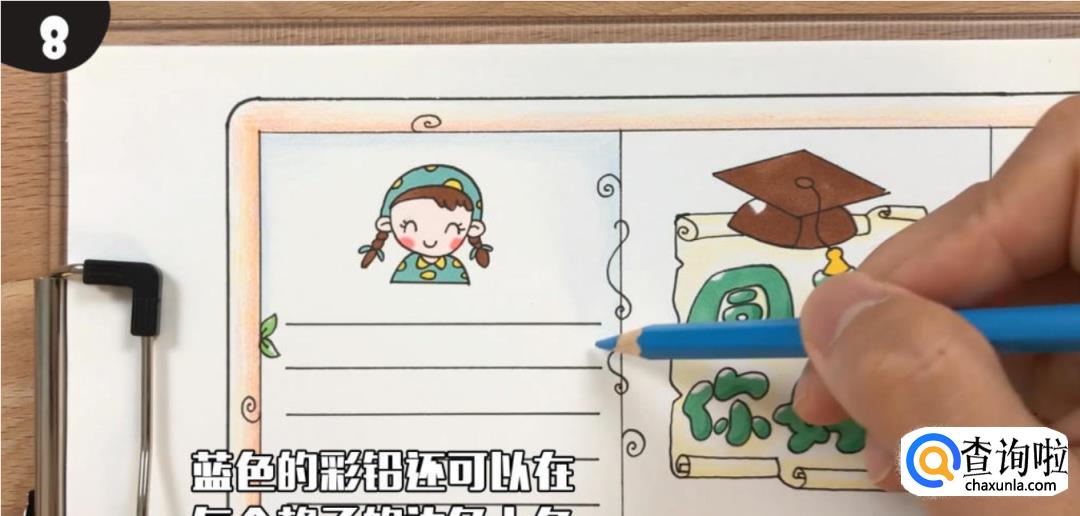 接下来我们就可以用彩铅上色啦,可以先从边框开始。