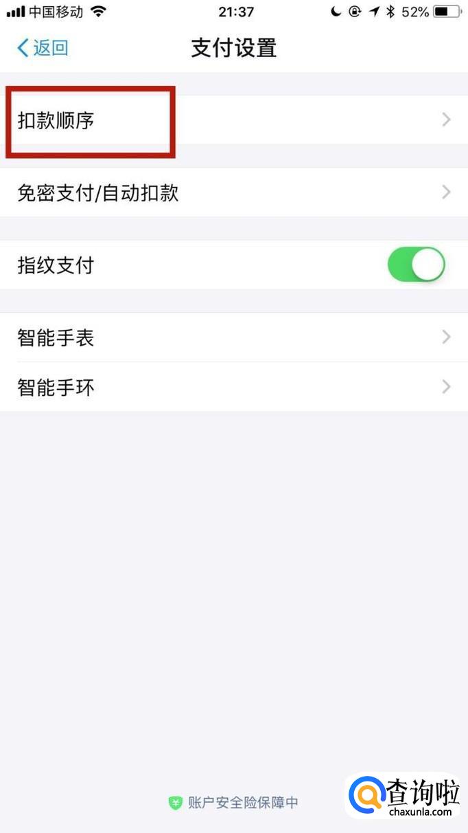 接着点击扣款顺序,如下图所示。