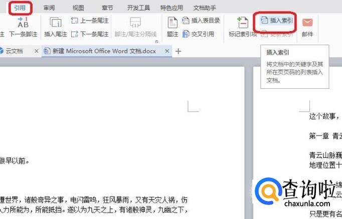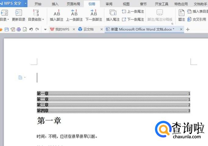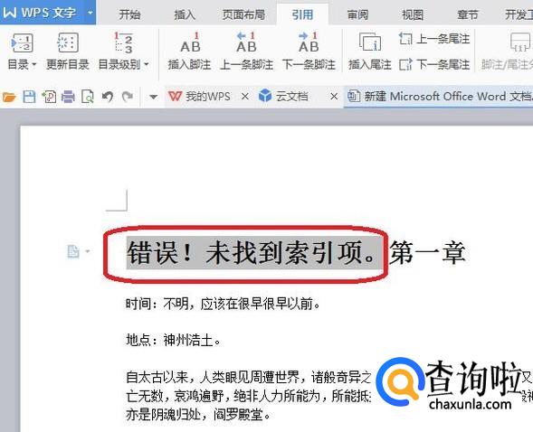 首先,我们用WPS打开Word文档,如图所示,如果我们直接点击“引用”,“插入索引”的话,会出现黑体字“错误!”,所有我们需要先标记一下索引项。
