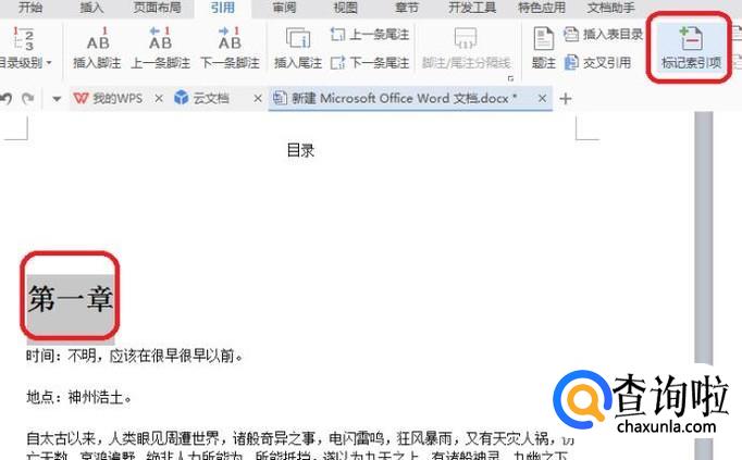 点击选中文中需要索引项,如图所示,点击功能区“标记索引项”。