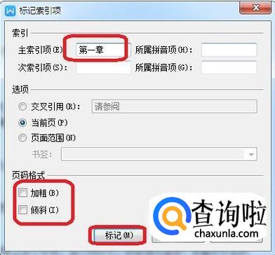 出现“标记索引项”面板,我们可以在其中设置一下,设置完成后点击“标记”,“关闭”,然后依次把其余文中需要索引项都标记一下。