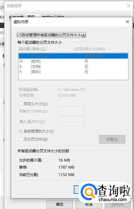 之后找到“高级”,然后在“高级”下找到“虚拟内存”属性,LOL装在那个盘,然后再自定义。将虚拟内存调整到最大。