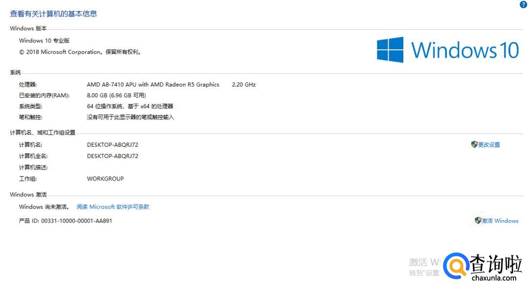 右击“我的电脑”——“属性”,再打开“我的电脑”属性面板。