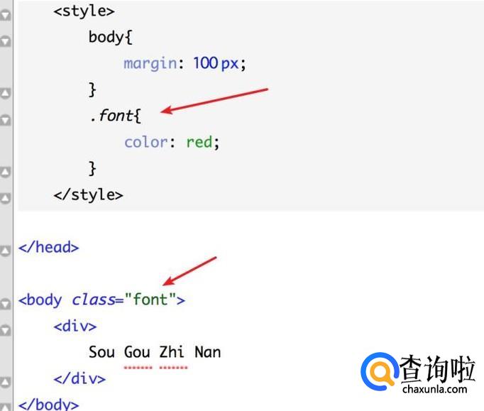为.font 这个样式规则添加样式代码,很简单,就是添加color的样式,样式值为红色:red。代码如图。