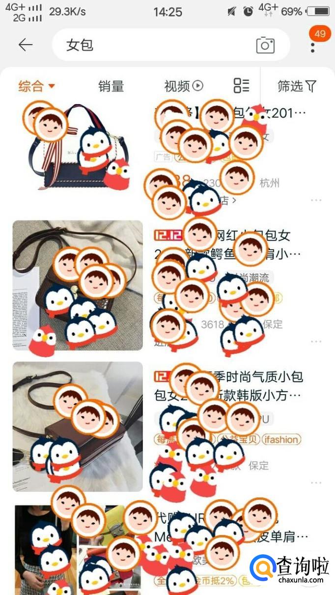 然后我们在首页的输入栏里面输入女包两个字,并且进行搜索。