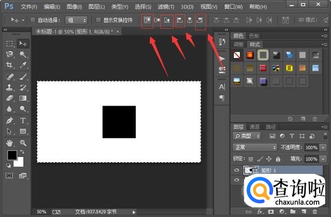 想要把图形居中,我们只需要点击移动工具属性里面的垂直居中对齐和水平居中对齐就可以了。