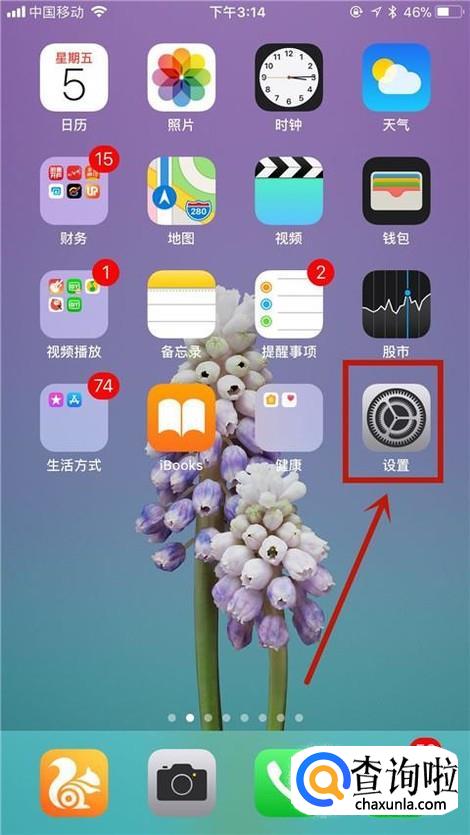 首先在我们手机桌面上找到设置并点击它,如下图所示。