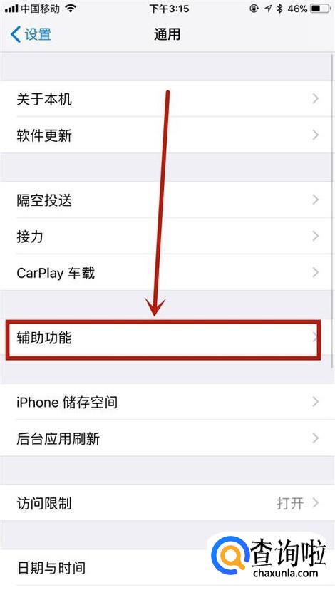 接着点击辅助功能,如下图所示。
