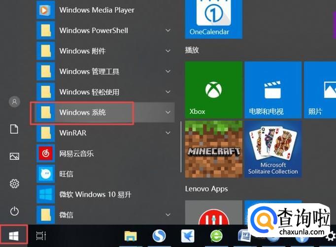 我们左击电脑左下角的微软按钮,弹出的界面,我们进行下滑,找到Windows系统,并点击打开它;