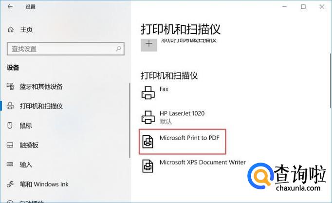 然后我们再进入设置里面,在打印机和扫描仪中,我们可以看到已经成功添加了被我们误删的Microsoft Print to PDF打印机了,结果如图所示。