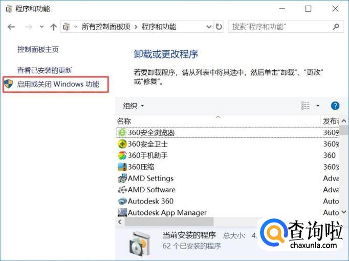 弹出的界面,我们点击启用或关闭Windows功能;