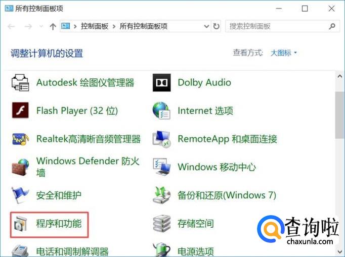 进入控制面板之后,我们点击程序和功能;