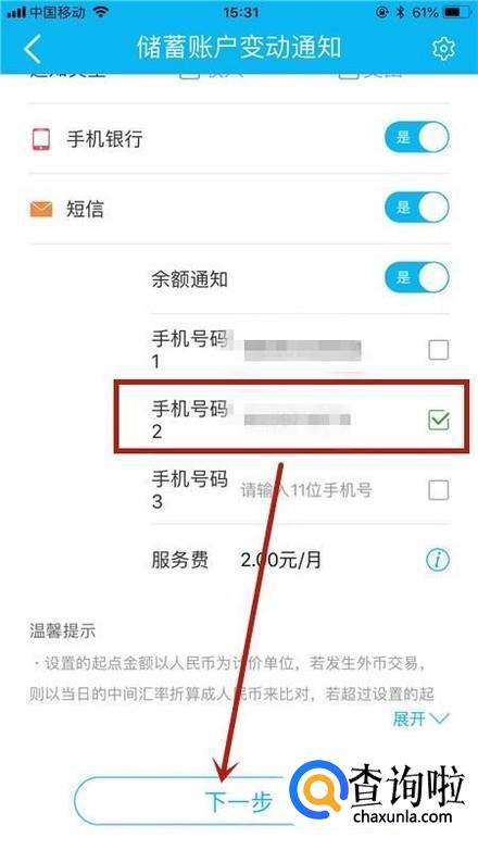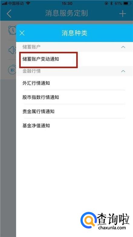 然后点击储蓄账户变更通知,如下图所示。