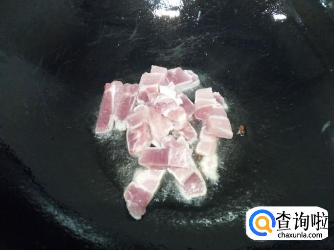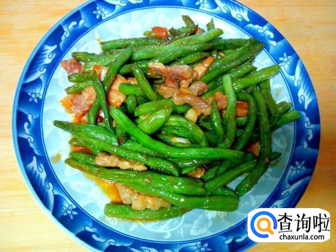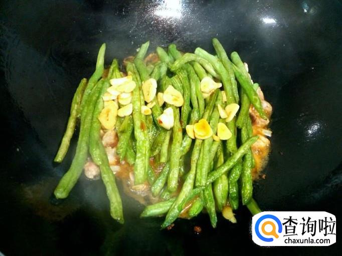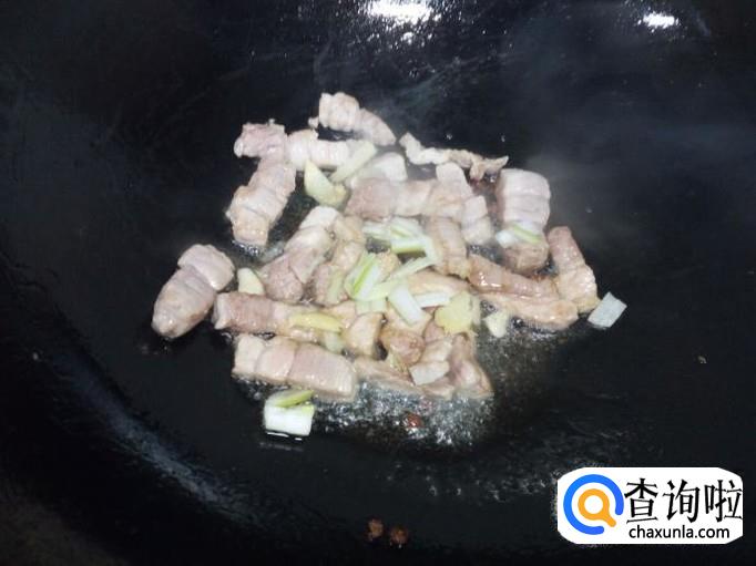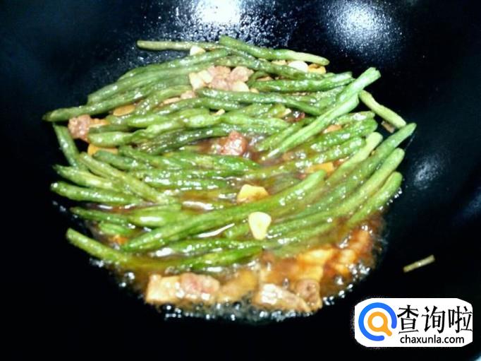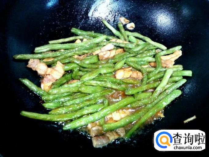 炒至肉片颜色微白,放入葱,姜,翻炒,随即放入炸好的芸豆,放入调和好的料汁,略烧一下。