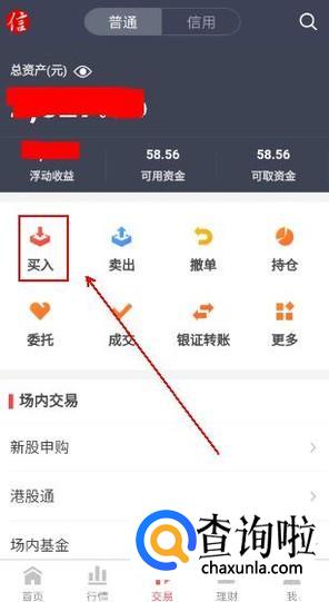 在“交易”选项卡中点击“买入”选项。