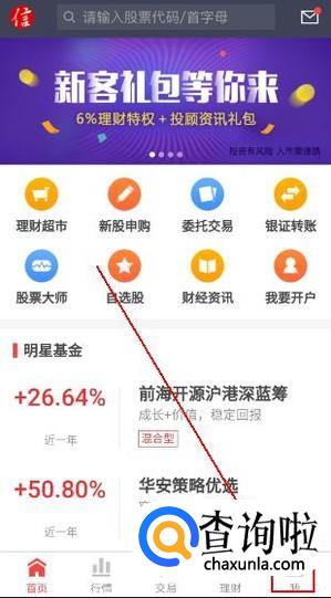 登录账号后,点击下方导航栏上的“交易”选项。