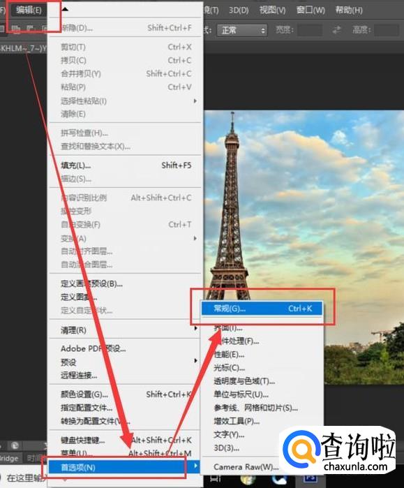 点击“编辑”,找到“首选项”,然后点击“常规”进入下一页面,如图所示。