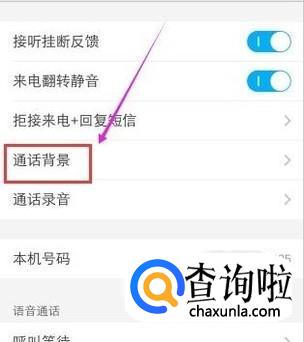 进入电话页面,点击“通话背景”进入下一页面,如图所示。