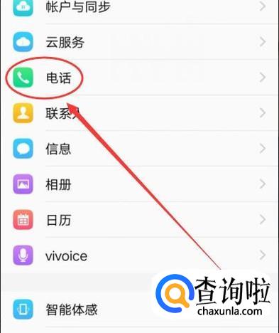 进入设置之后,找到“电话”点击并进入,如图所示。