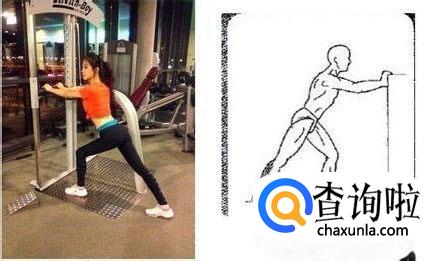 拉伸者双手抓住固定物保持身体前倾,双脚前后站立,保持前脚屈膝,后脚绷直。然后让中心慢慢像前移动,保持后脚始终绷直并拉伸小腿肌肉,然后再换另外另外一侧。